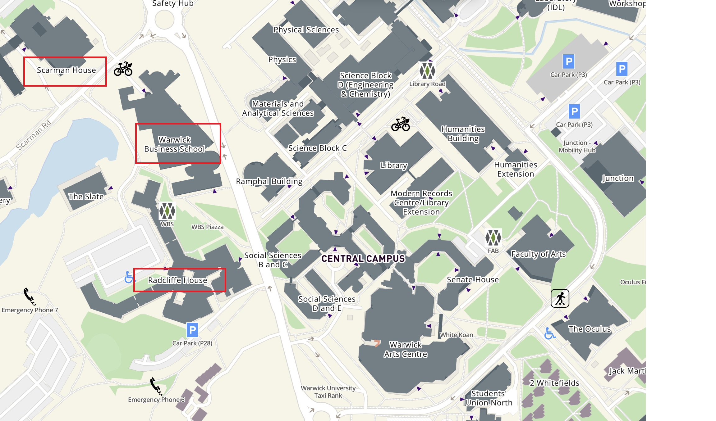 There are two within-campus hotels to book: Radcliffe (right near the conference venue) and Scarman (3 min walk to the conference venue). Please proceed your booking via: https://bandb.warwick.ac.uk/