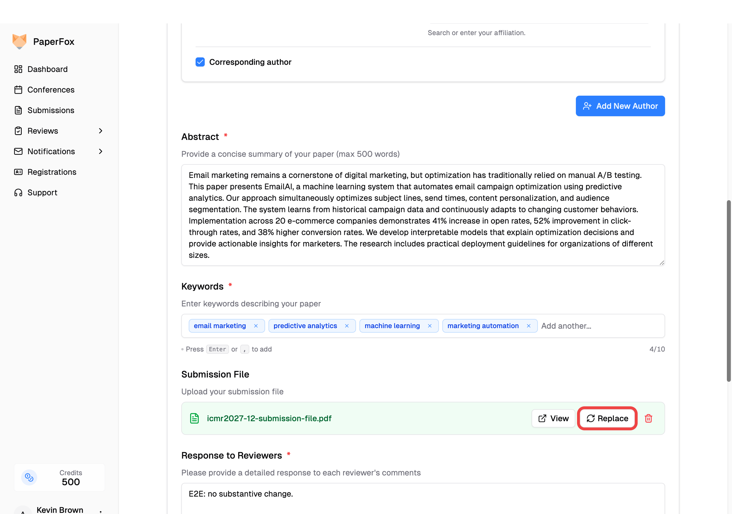 - Uploaded files — replace your submission PDF