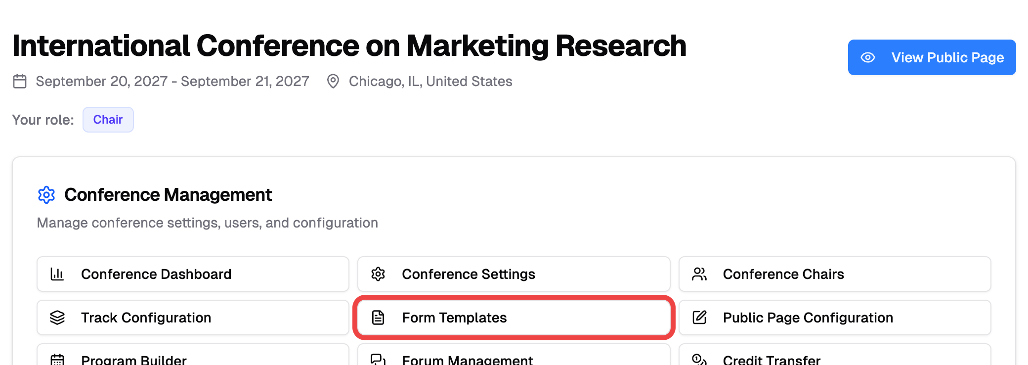 - Under Conference Management, click "Form Templates"