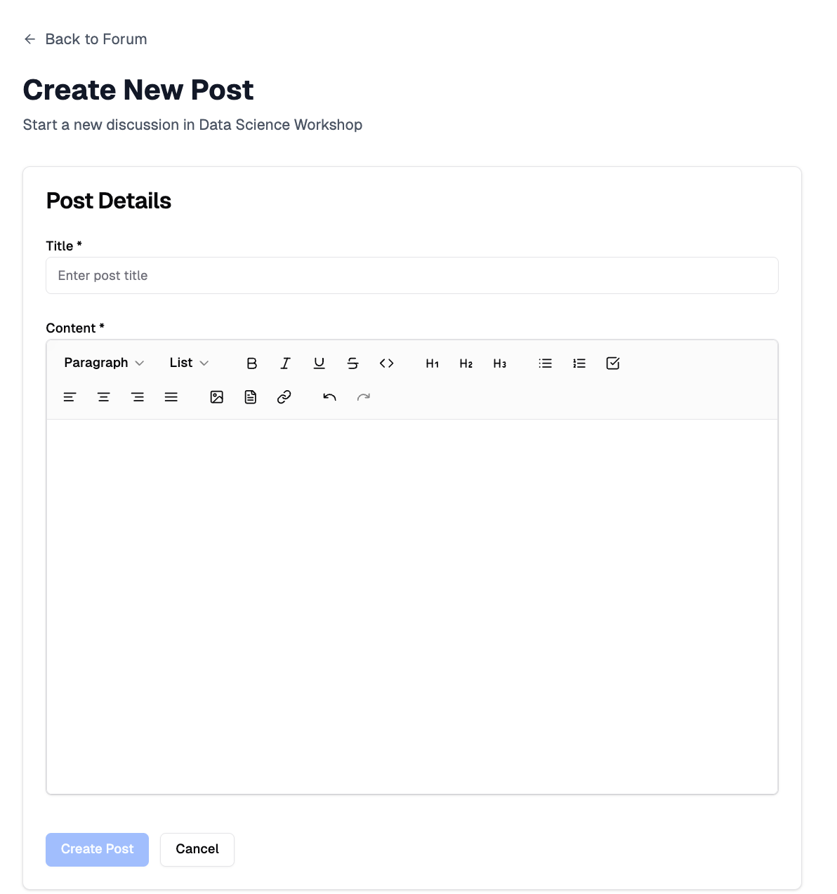 When disabled: The forum is hidden from attendees and no new posts can be created