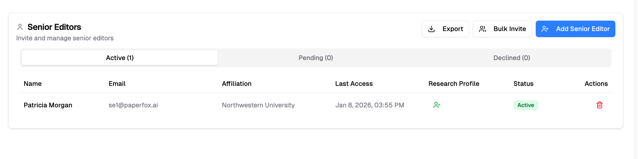 - Invite users to serve as Senior Editors