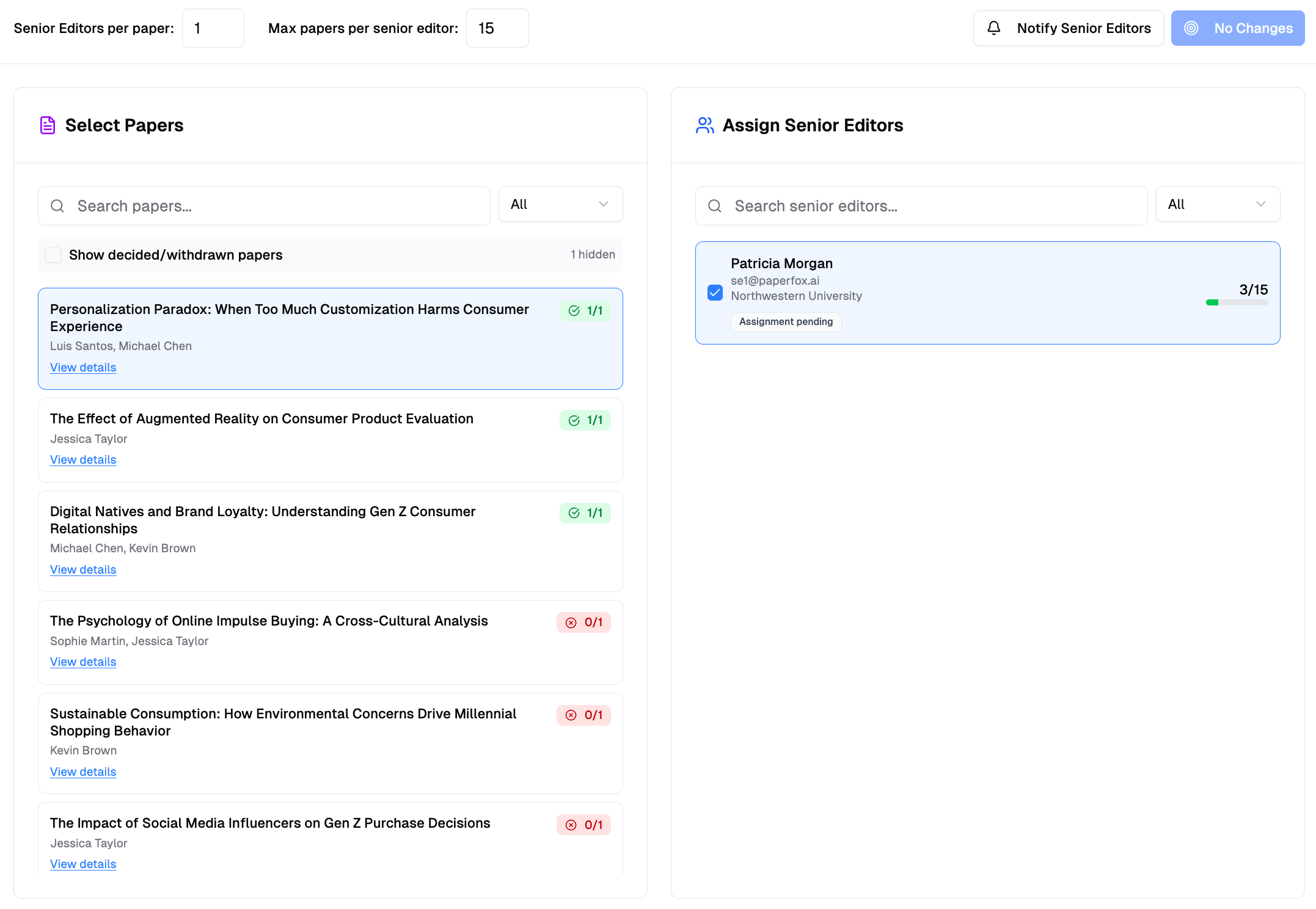 Assign Papers to Senior Editors