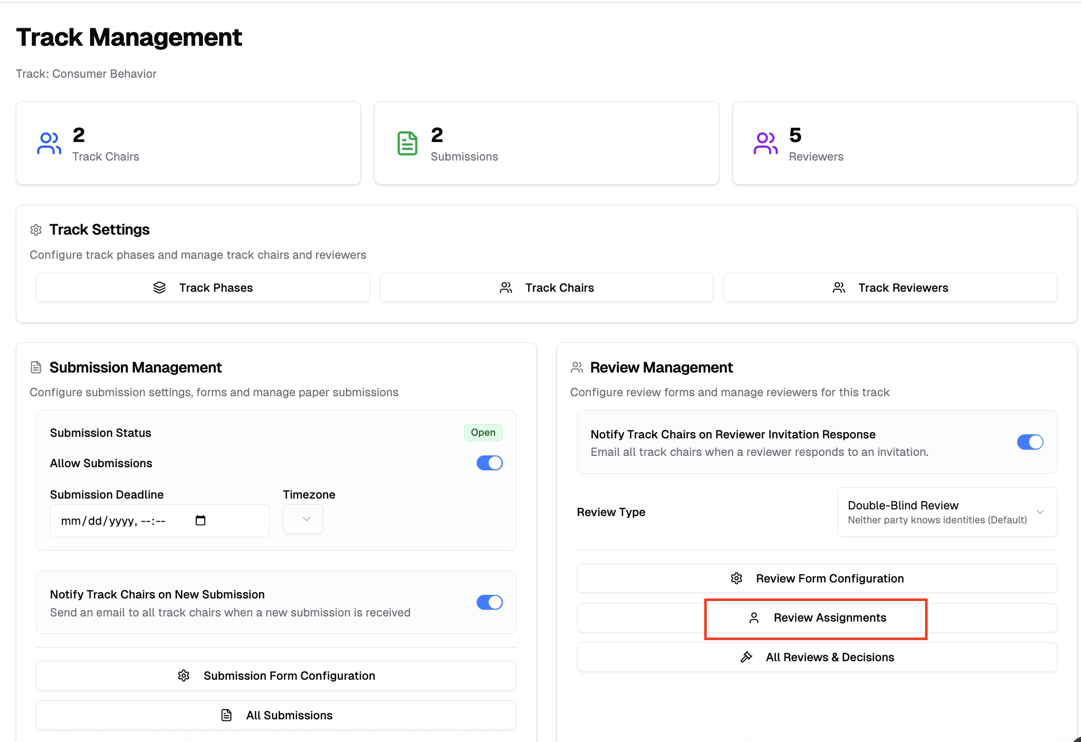 - Navigate to your track's Review Assignments page (see Review Assignment guide)