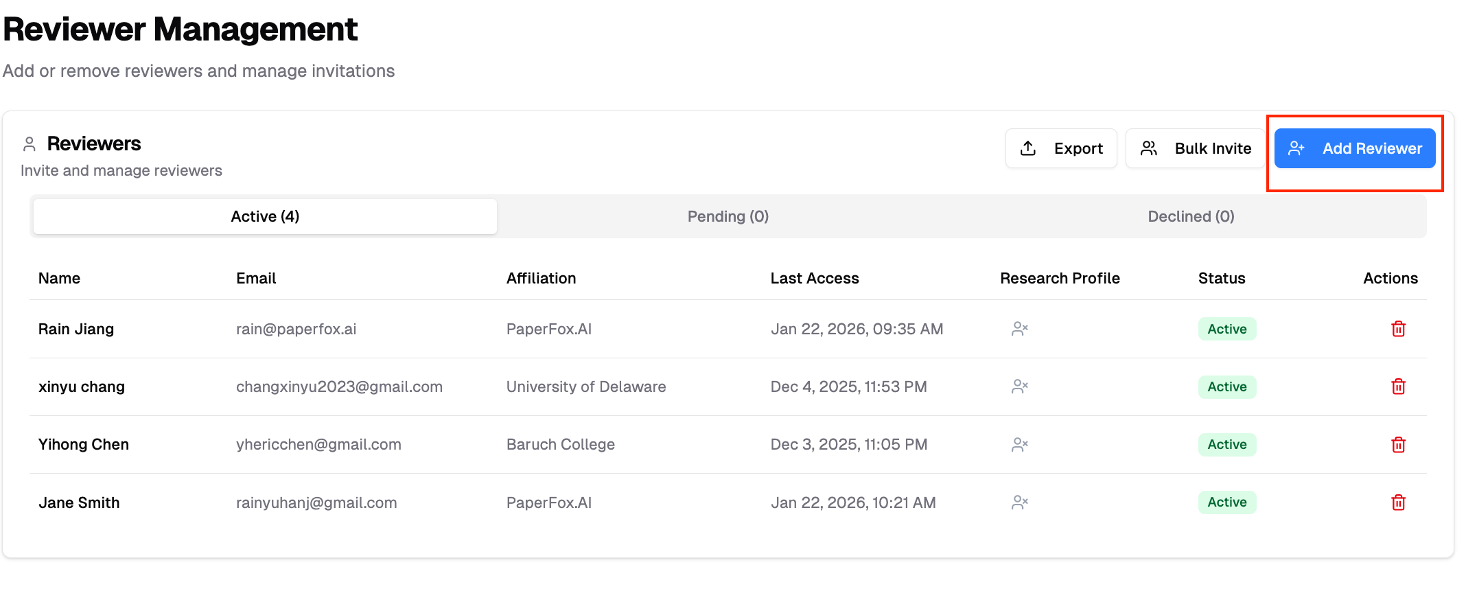 Guide for track chairs to invite and manage reviewers for paper evaluations