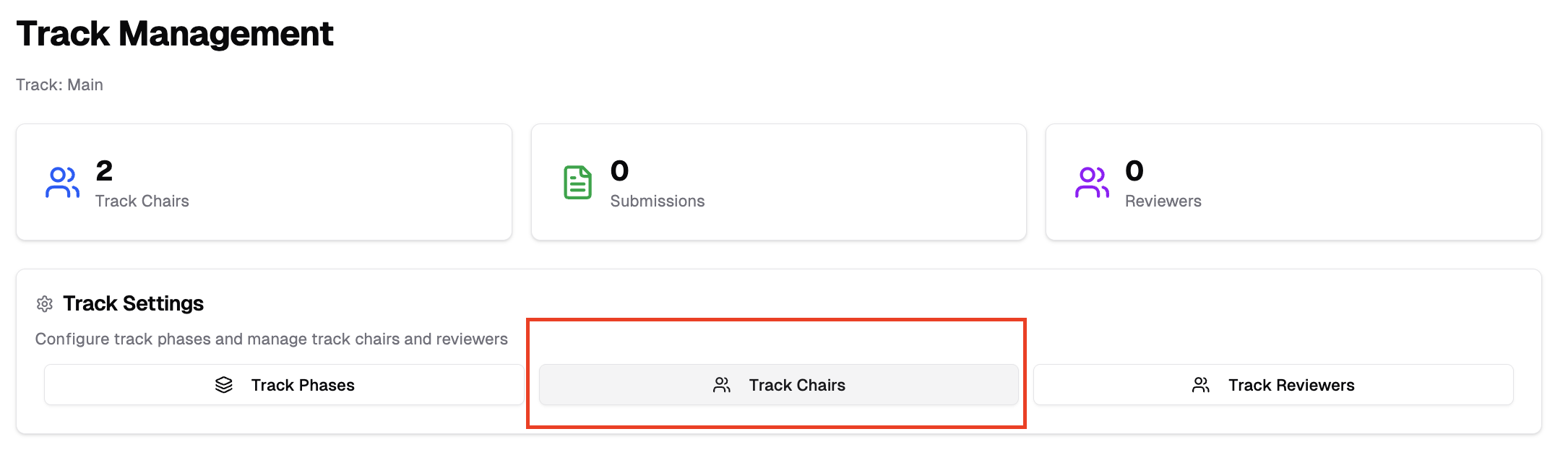- In Track Management page, click "Track Chairs"